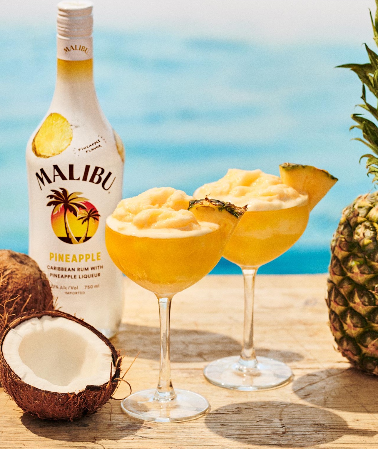 To beat the summer heat, we suggest mixing up some frozen Daiquiris from Malibu Rum. The beloved Carribbean rum is available in delicious flavors like lime, pineapple and mango, so you can bring a taste of the tropics to your home at any time. Mix up one of these frozen Malibu Daiquiris for an instant vacation.