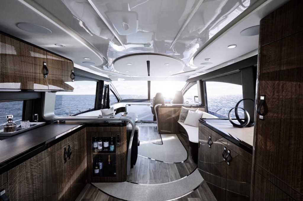 Production of the LY 650 is by Marquis Yachts’ superbly skilled craftspeople in Wisconsin. Their extensive marine experience and takumi craftsmanship are evident in each hand-molded, custom-painted hull, which is created with exacting precision that is also applied to the machining and welding processes. Finely crafted details are evident in the stainless-steel deck fittings custom-made for each vessel by in-house fabricating and welding takumi, the extensive custom-fitted and custom-finished real wood trim and fabricated furniture components, and the hand-sewn seat surface materials.