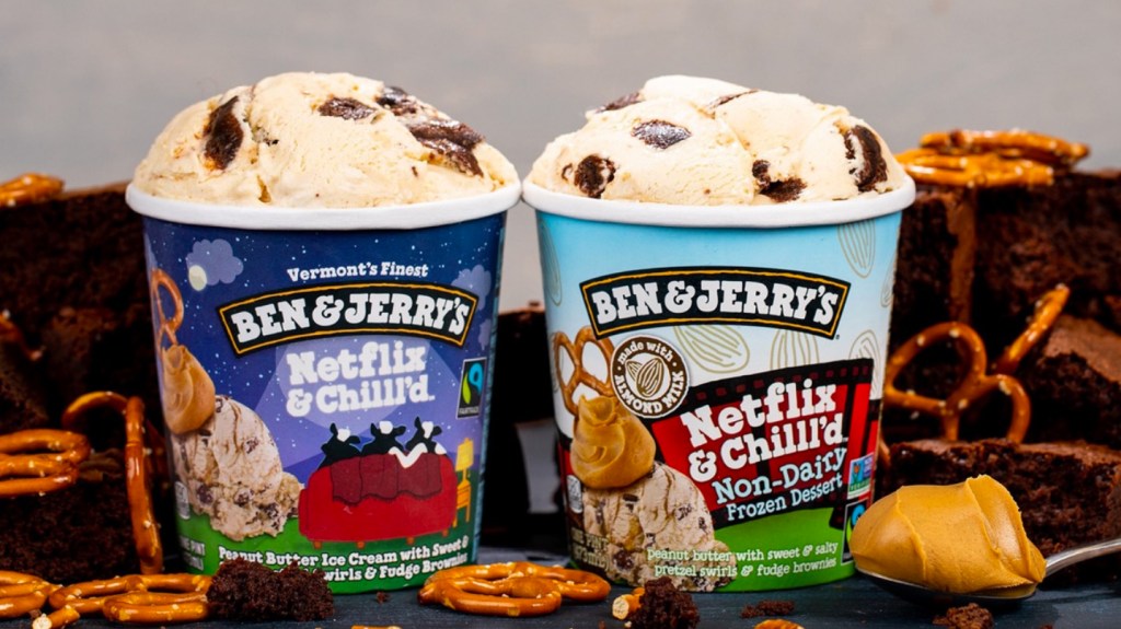 Ice cream maker Ben & Jerry’s teamed up with Netflix to churn up a sweet and savory creation, and they named it “Netflix & Chilll’d.”