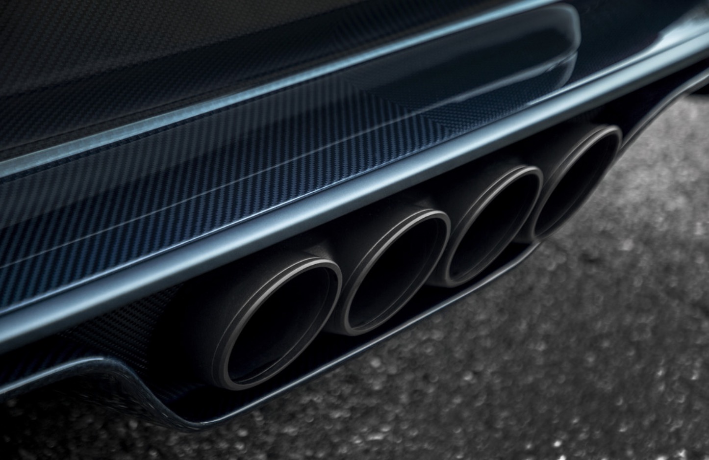 The body and front end are made from carbon fiber, while the Bugatti line and Bugatti radiator are made from aluminium. The matte Steel Blue paintwork at the rear of the car, produced in a complex process, has a sheen like hot-rolled steel. The typical Bugatti line, the dominant “C” surrounding the passenger compartment, is also painted Steel Blue. The front end consists of exposed carbon fiber in Steel Blue Carbon, once again a matte color suggestive of steel.