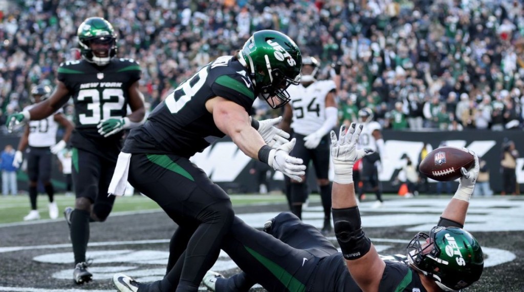 The game Sunday featured a 102-yard kickoff return, a 52-yard touchdown run by Jets quarterback Zach Wilson and two touchdowns by offensive linemen.
