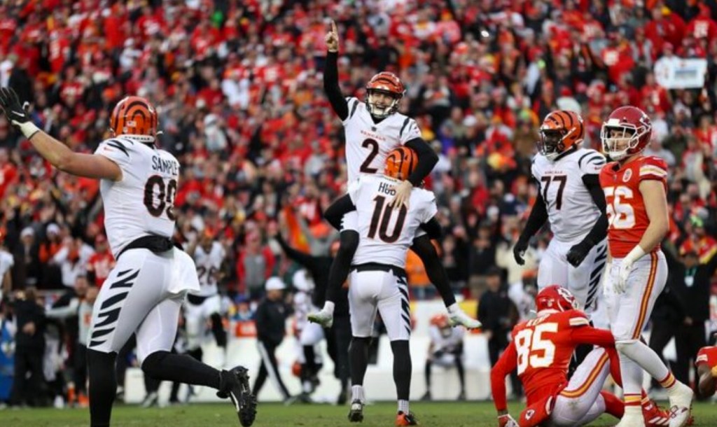 Evan McPherson won the game for Cincinnati with a 31-yard field goal after Patrick Mahomes was intercepted by Vonn Bell 14 seconds into overtime.