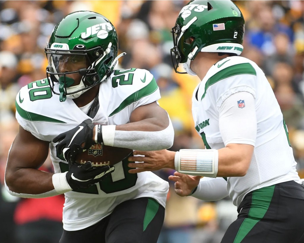 The touchdown capped an 11-play, 65-yard drive that started when Jets cornerback Michael Carter II intercepted Steelers rookie quarterback Kenny Pickett on a tipped pass at the Jets’ 35 with 3:34 left.