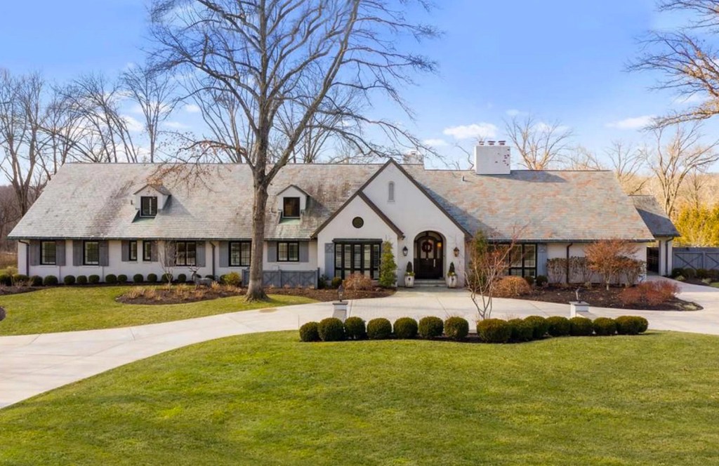 The house, which he purchased with Beisner during their engagement, according to a 2016 St. Louis Magazine feature, has a double gable exterior with two triangular peaks on the house’s face. Tall, black-lined windows and an oculus window define the facade, while two dormer windows pop out of the gray and red shingled roof.