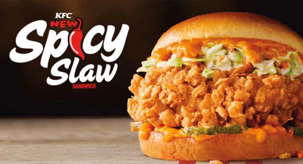 - The Spicy Slaw Chicken Sandwich consists of an Extra Crispy, 100 percent white meat filet is topped with cole slaw to perfectly cool down the heat of the spicy mayo, topped with pickles all on a premium brioche bun.
