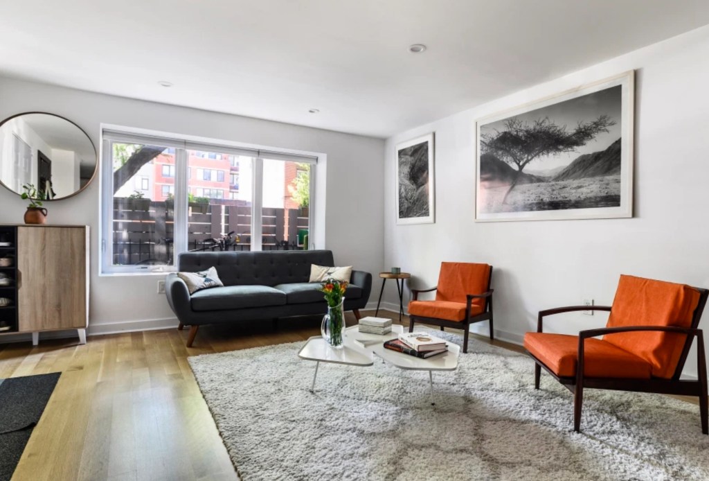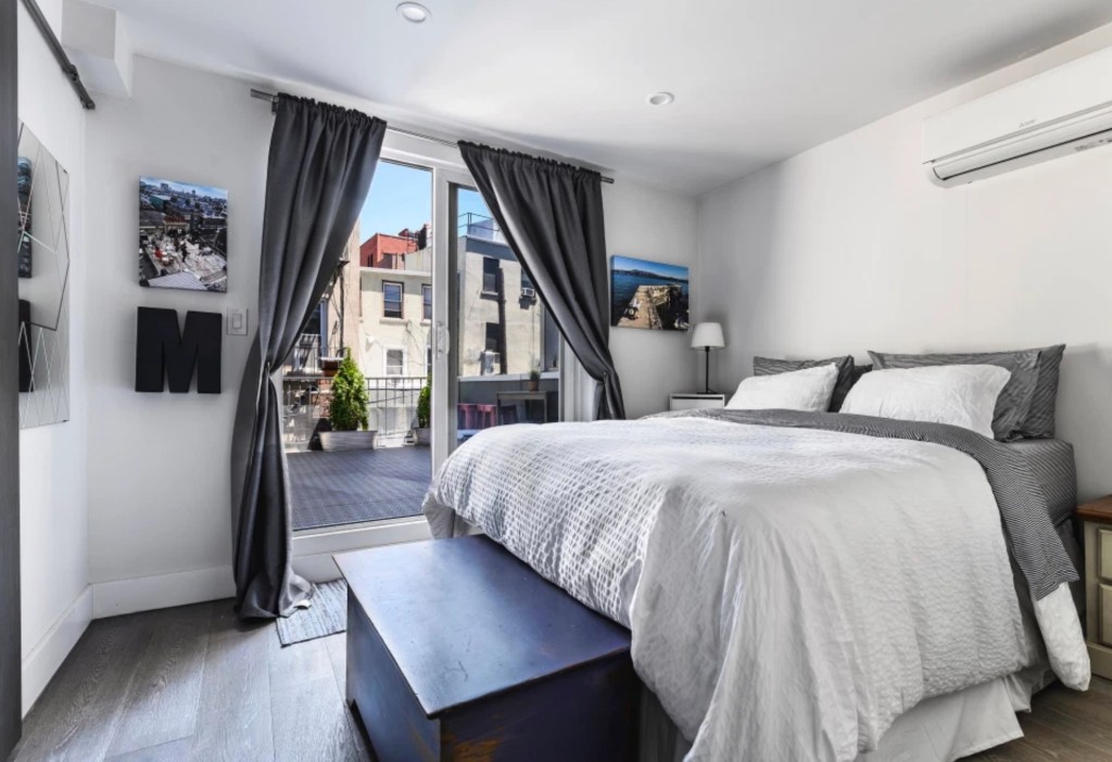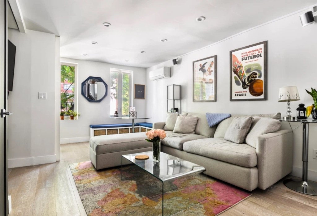 The 20-foot-wide townhouse, which has undergone a full renovation, is currently divided into three units: There’s a three-bedroom, 2½-bathroom owner’s duplex with a garden, plus two separate one-bedroom apartments above it that also come with private outdoor space and can be used for rental income.