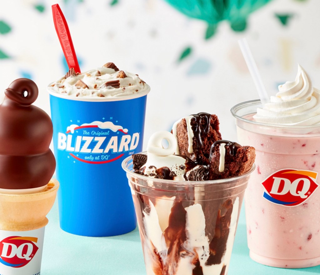 Choco Dipped Strawberry Blizzard Treat: Strawberry and choco chunks blended with DQ soft serve.