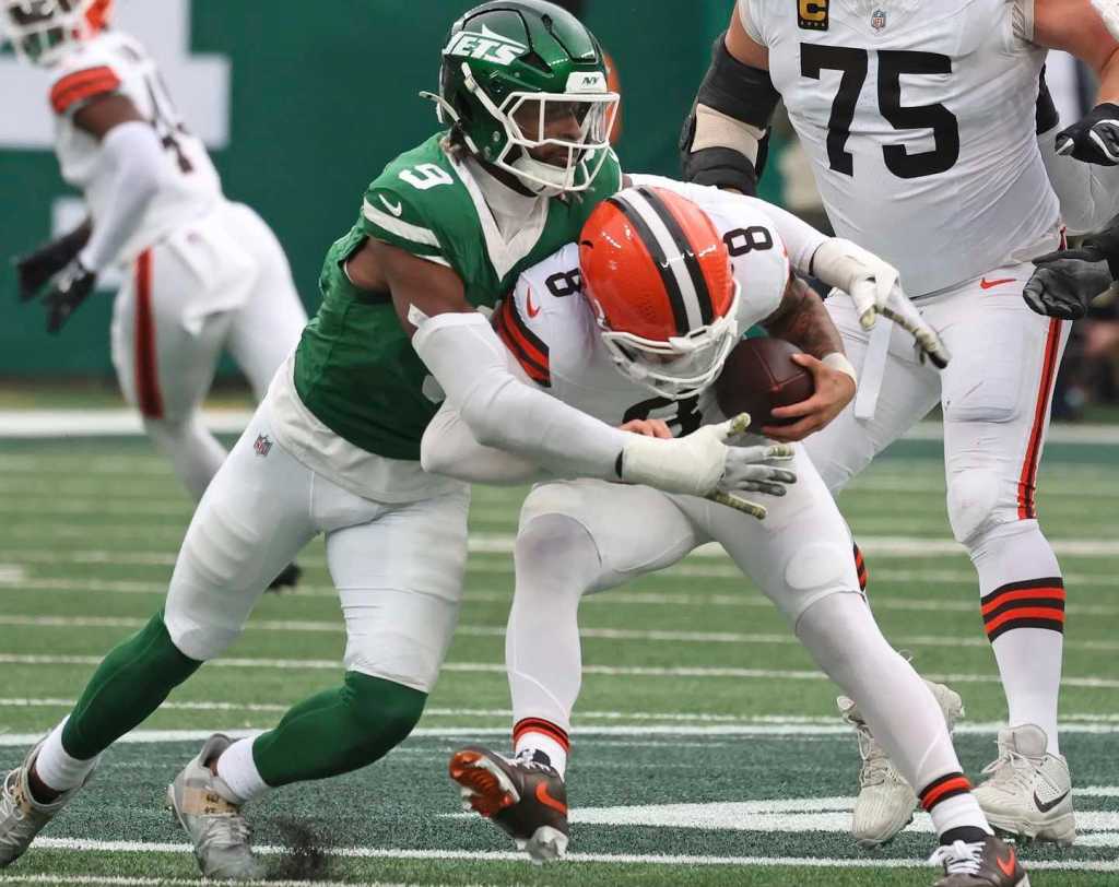 The New York Jets got touchdowns on a kickoff return and a punt return in the same game for the first time in franchise history, Breece Hall took a screen pass from Justin Fields 42 yards for the go-ahead score and the Jets held on to defeat the Cleveland Browns 27-20 on a rainy Sunday.