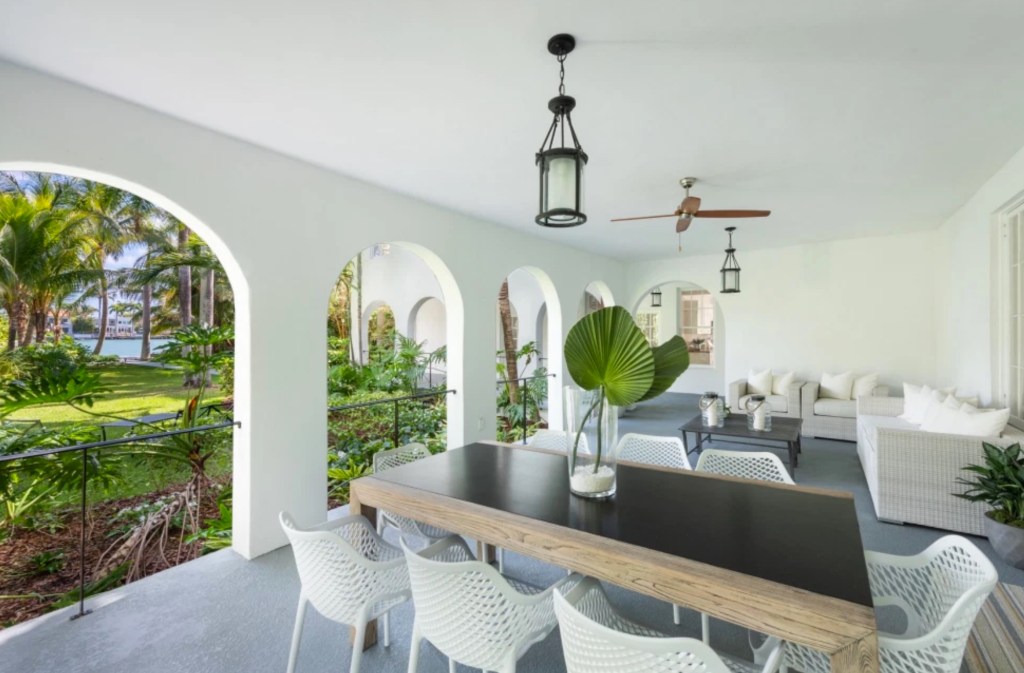 A former gatehouse — installed by Capone — has now been transformed into a two-bedroom, one-bathroom guesthouse. The property offers 100 feet on Biscayne Bay.